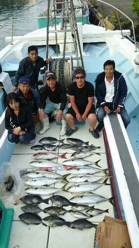 ↑↑ ドローンぽく上から 玄達到着、敦賀の船に潮聞くと07で250度からとの事。 ヨシッ、流れてる 昨日は潮流れず青物見れんかったとのこと。餌取り凄かったとのこと。 今日はイケそう。 二流し目からヒラマサ、グレ、いさぎ、真鯛と順調にヒット♪ 風は流す方向…